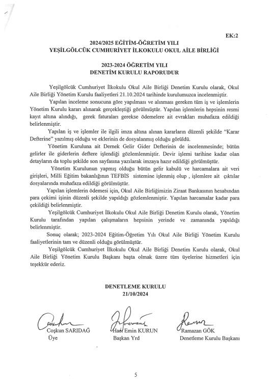 2023-2024 EĞİTİM ÖĞRETİM YILI OKUL AİLE BİRLİĞİ DENETLEME KURULU RAPORU